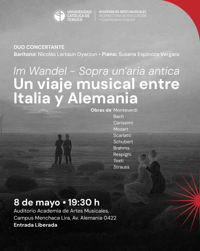 En el marco de la gira chile 2026, la Tuna Universitaria de Alcalá de Henares, con 28 de sus integrantes, se presentará en el Aula Magna UCT el 25 de marzo a las 19:30 horas; oportunidad en la que podremos disfrutar de la alegría y calidad artística de una de las tunas de mayor abolengo de España, de antecedentes centenarios, que ha contado entre sus miembros al mismísimo Francisco de Quevedo.