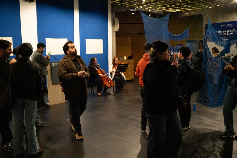 “La tierra se tiñe de azul en la orilla”, invita a las y los visitantes a adentrarse en la microhistoria de esta joven capitalina, a través de un proceso que rescata la manualidad y lo íntimo. Egresada de la carrera de Artes Visuales de la Universidad Diego Portales, enfocada en prácticas textiles, como el bordado y el tejido a crochet, Ayline Figueroa fue seleccionada en la Convocatoria de Artes Visuales 2025 de la UCT, instancia que promueve el talento regional y el intercambio entre artistas y la comunidad universitaria.